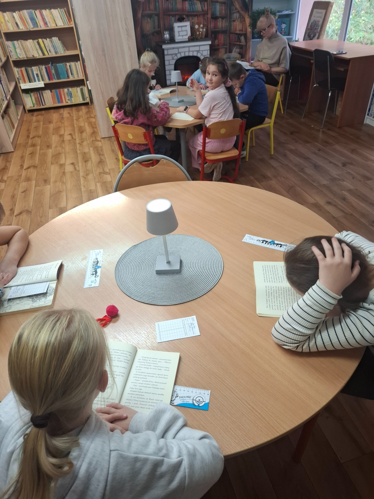 Uczniowie z koła czytelniczego, prowadzonego przez panią Żanetę Nukui, regularnie odwiedzają naszą bibliotekę szkolną. Spotkania te to nie tylko okazja do wypożyczenia ciekawych książek, ale przede wszystkim czas rozmowy o literaturze, wspólnego czytania i dzielenia się refleksjami.